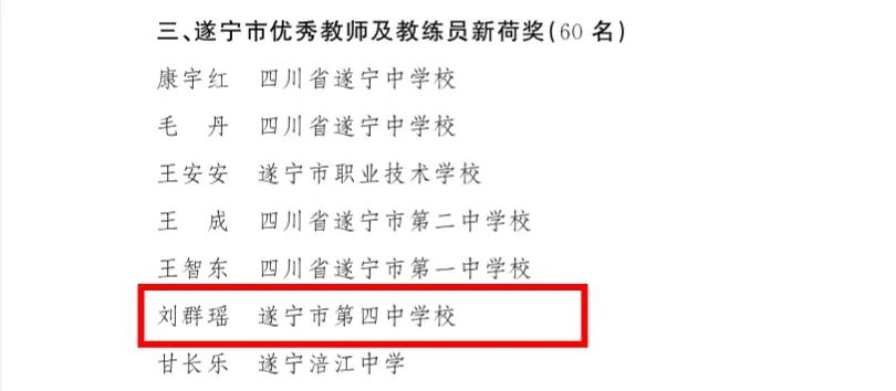 劉群瑤 榮獲“遂寧市優(yōu)秀教師及教練員新荷獎”