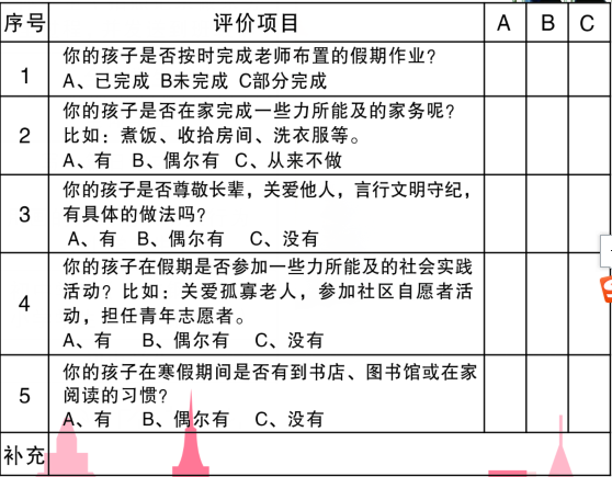 請家長對學生寒假期間綜合素質(zhì)能力進行評價