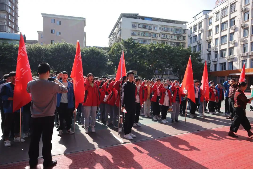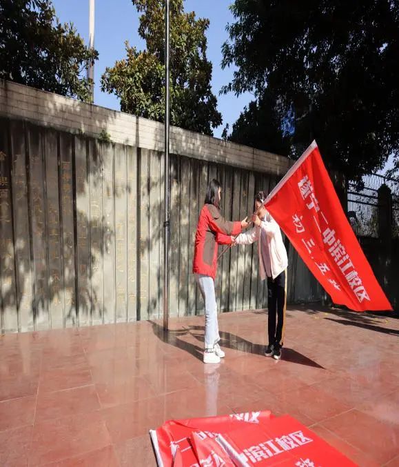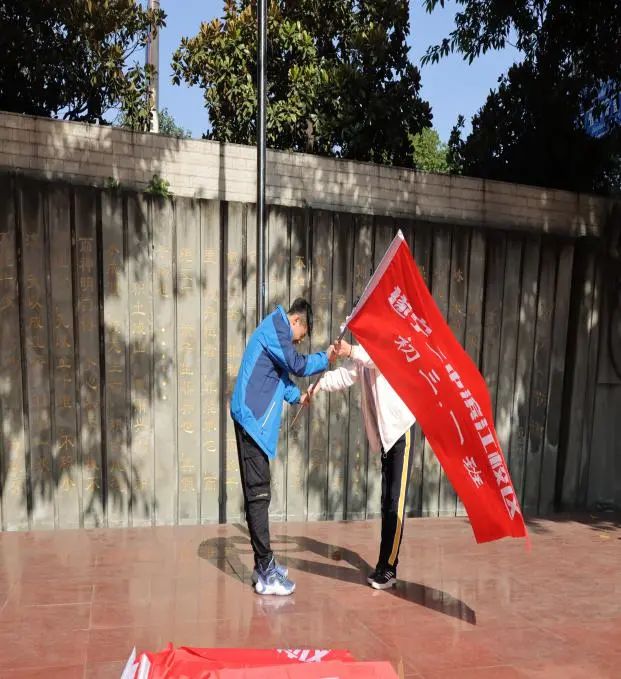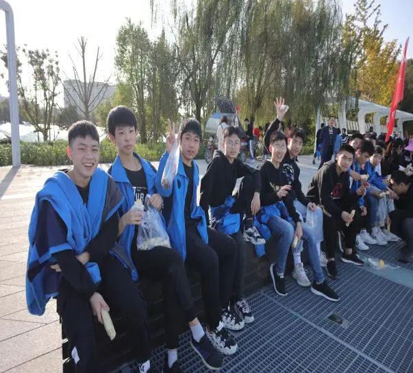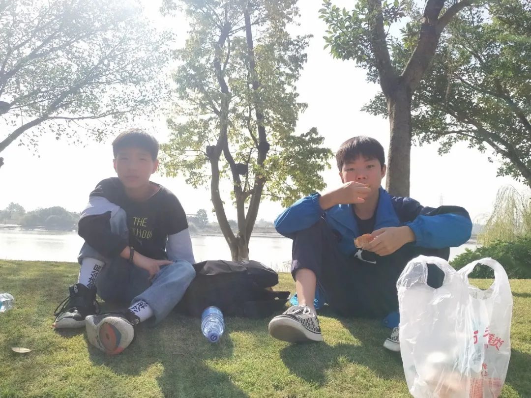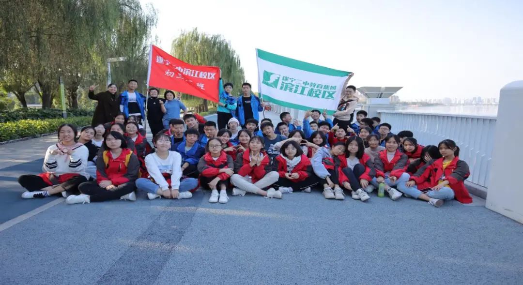 ? ??當天下午,濱江校區(qū)的操場上,艷陽高照、紅旗飄飄、笑臉飛揚,初三的孩子們身著統(tǒng)一的校服,等待著期待已久的“親近自然,挑戰(zhàn)自我”遠足拉練活動。