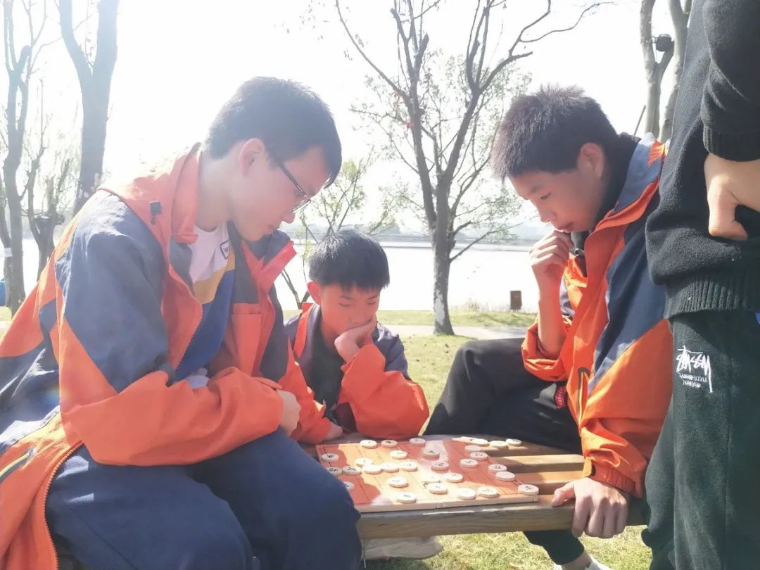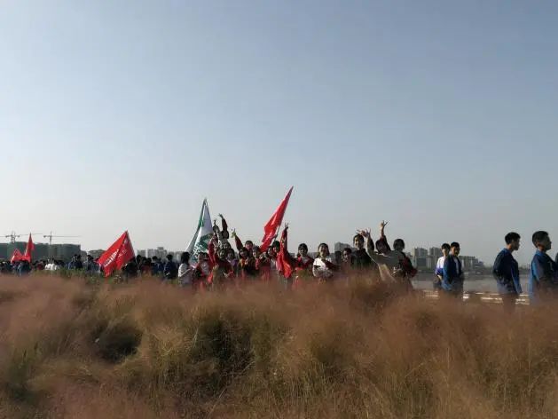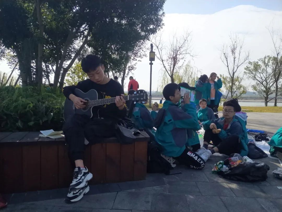 ? ? 14:30,隨著出發(fā)令響,師生們迎著冬日的暖陽,帶著滿滿的熱情,開始了來回10公里的遠足之旅……同學們在老師們的陪伴下,一路歡歌笑語,校旗、班旗迎風招展。16:00,各班陸續(xù)到達了目的地——過軍渡。經(jīng)過短暫的休息后,同學們以班級為單位開展集體活動。白云悠悠、陽光柔柔,壩上不時而傳出悅耳動聽的歌聲、聲情并茂的朗誦......
