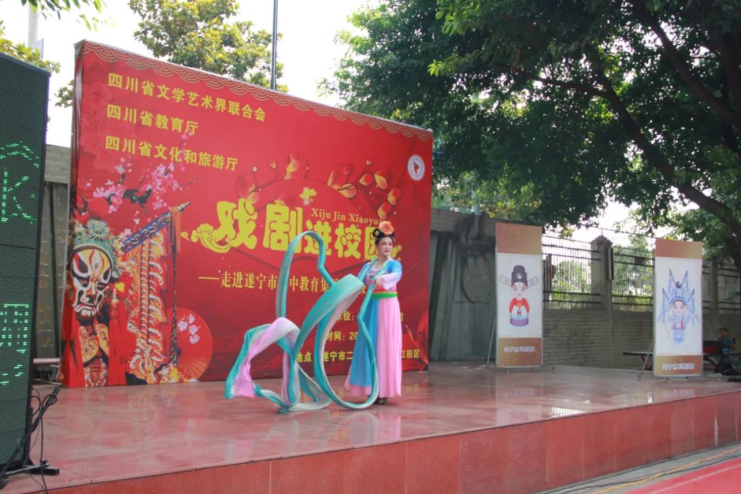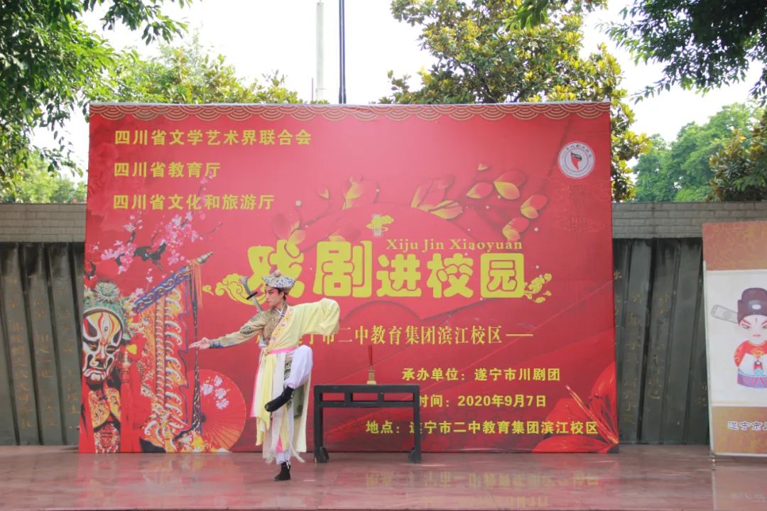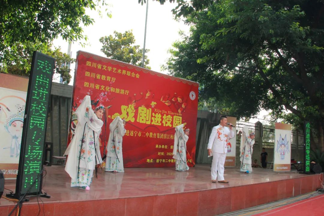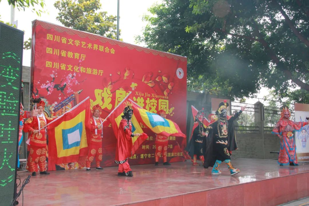 ? ? 按照?qǐng)?jiān)持導(dǎo)向、育人為本、因地制宜、統(tǒng)籌推進(jìn)的要求,在全省大中小學(xué)廣泛開展戲曲進(jìn)校園活動(dòng),形成課堂教學(xué)和課外活動(dòng)相結(jié)合、普及教育與專業(yè)輔導(dǎo)相促進(jìn)、傳承傳習(xí)和社會(huì)熏陶相銜接的戲曲傳承發(fā)展新局面,為四川戲曲振興發(fā)展提供重要支撐。由四川省文聯(lián)、四川省教育廳、四川省文化和旅游廳主辦,遂寧市川劇團(tuán)承辦的四川省戲曲進(jìn)校園遂寧巡演,于9月7日上午在遂寧二中教育集團(tuán)濱江校區(qū)舉行。