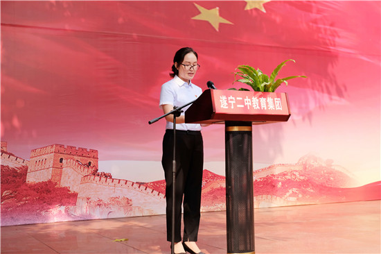 校長潘明英致辭。“作為新時代的老師,我們每個人都要肩負(fù)起教書育人、管理育人、服務(wù)育人的使命......”同時她希望同學(xué)們做一個有理想、有智慧、有世界眼光的現(xiàn)代人,擔(dān)負(fù)起建設(shè)祖國、建設(shè)家園的重任,崇尚美好、崇尚學(xué)習(xí)、崇尚進(jìn)步,為祖國母親增光添彩。?
