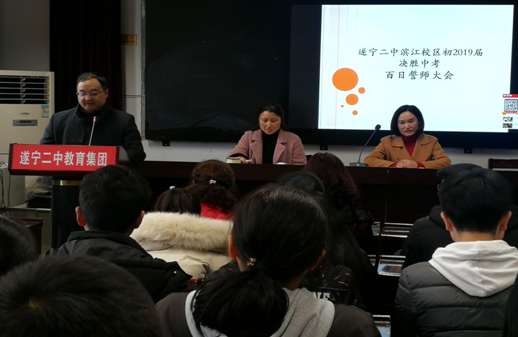 誓師大會(huì)上,遂寧二中教育集團(tuán)濱江校區(qū)黨支部書(shū)記、校長(zhǎng)潘明英女士發(fā)表了熱情洋溢的講話(huà)。她激勵(lì)初三學(xué)生,成功酷愛(ài)奔跑者,年華不負(fù)追夢(mèng)人,告誡初三學(xué)生在通往中考的路上要注重目標(biāo)、信念、認(rèn)真、效率等四個(gè)方面問(wèn)題。隨后,學(xué)校分管初三年級(jí)和教學(xué)工作的副校長(zhǎng)肖待春系統(tǒng)介紹了初三畢業(yè)沖刺階段學(xué)習(xí)中的方式、方法;全面梳理了老牌名校遂寧二中的辦學(xué)業(yè)績(jī)、鼓勵(lì)初三學(xué)生努力學(xué)習(xí)、奮勇拼搏,為順利考上二中本部高中沖刺。陳欣老師、鄭玟锜同學(xué)、唐怡同學(xué)分別代表教師和學(xué)生做了交流發(fā)言。最后,我校全體初三學(xué)生在領(lǐng)誓同學(xué)的帶領(lǐng)下高聲宣誓。學(xué)校副校長(zhǎng)羅艷梅女士、初三全體科任教師參加百日誓師大會(huì)。