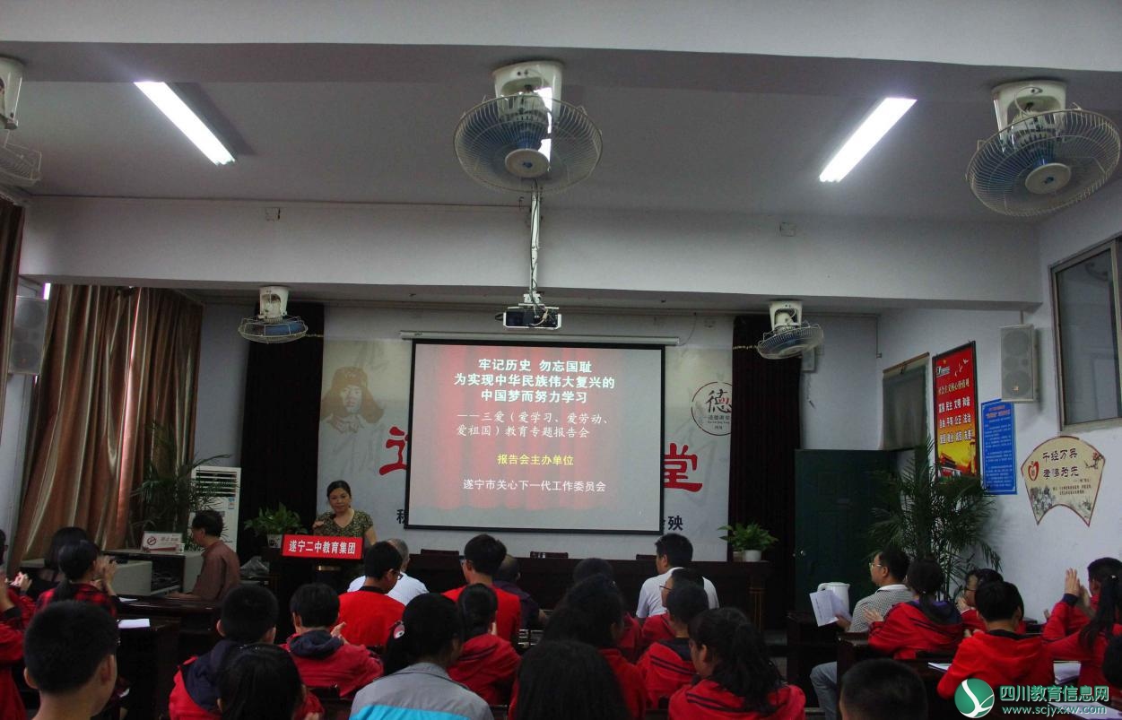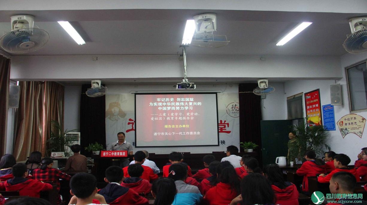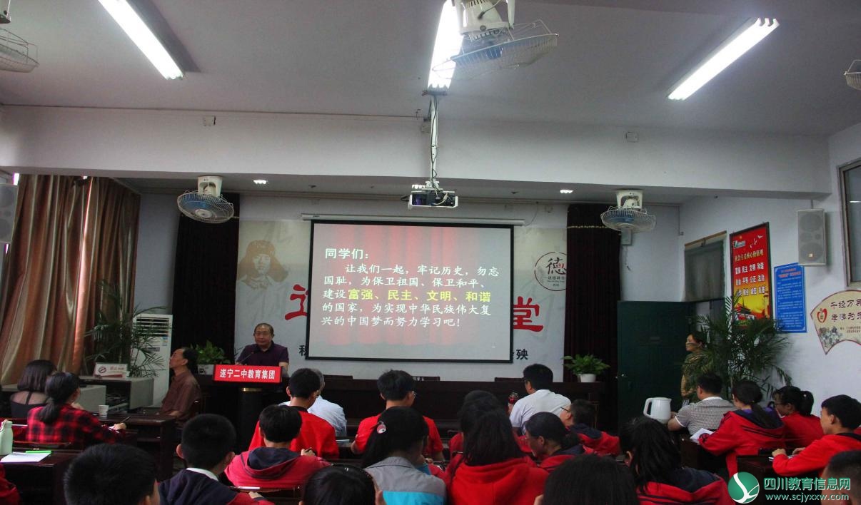 為了緬懷先烈的豐功偉績,弘揚中華民族偉大的抗?fàn)幘?,讓學(xué)生了解中國近代鴉片戰(zhàn)爭以來那段血淚斑斑的歷史,5月17日,市關(guān)工委、市教育局和遂寧二中濱江校區(qū)在學(xué)校五樓多功能會議室聯(lián)合召開以“牢記歷史,勿忘國恥,為實現(xiàn)中華民族偉大復(fù)興的中國夢而努力學(xué)習(xí)”為主題的革命傳統(tǒng)教育報告會。