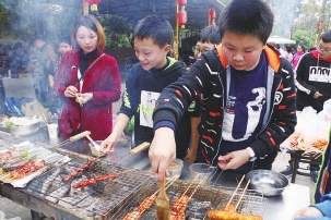 瞧,初一年級(jí)全體師生來到野炊營(yíng)地。他們以班劃區(qū)域、以小組為單位,分工合作,壘灶安鍋、清洗折菜、蒸烹煎炒、燜煮炸烤……八仙過海各顯神通,炊煙裊裊,人聲鼎沸,好一副熱鬧的畫面。