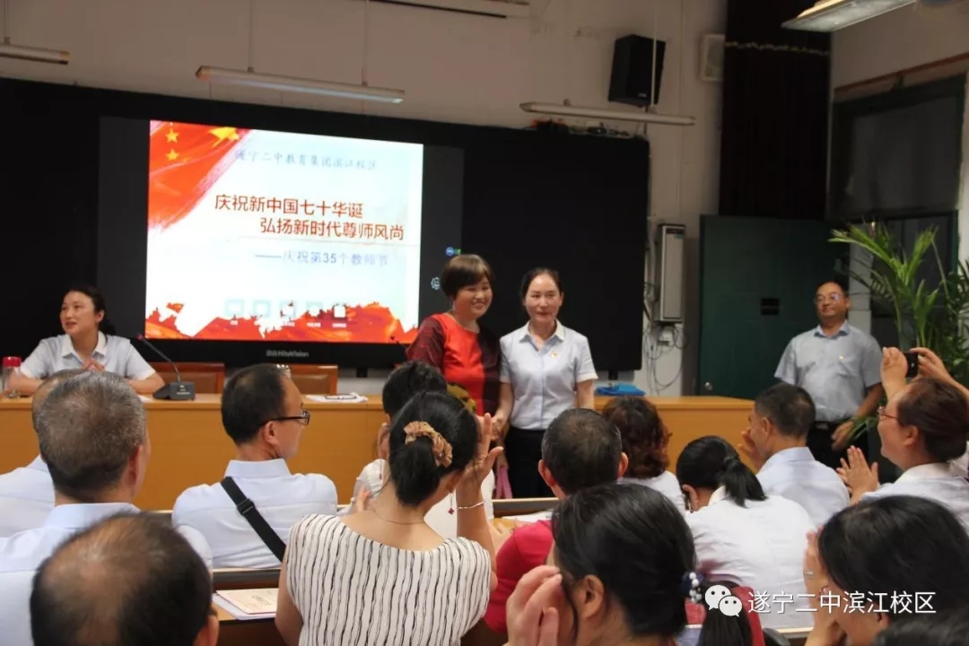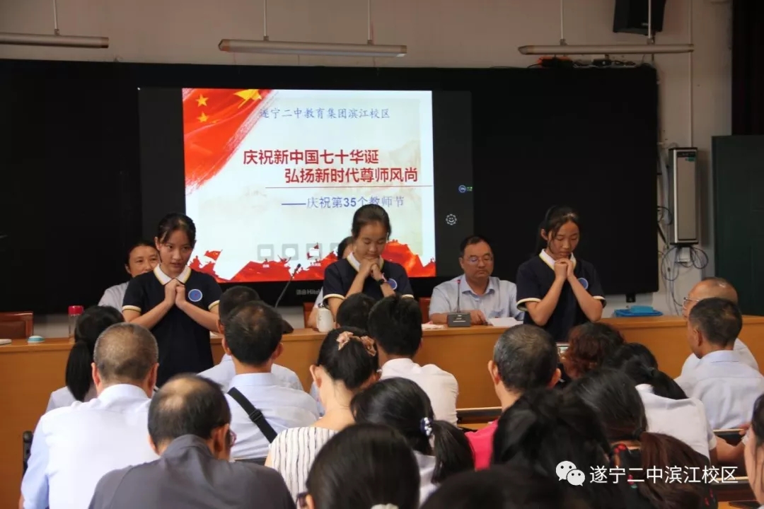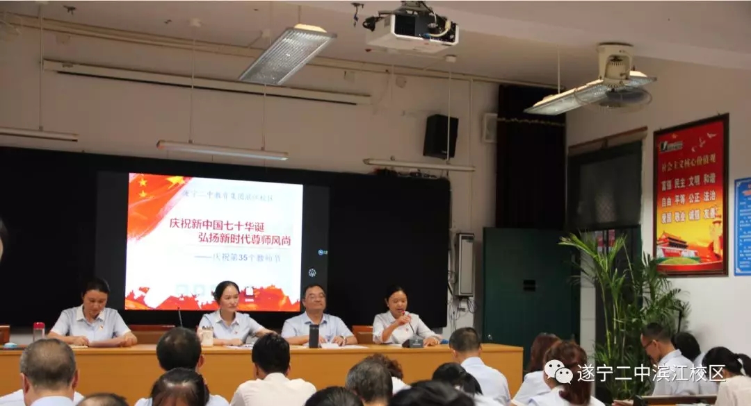 又一個收獲的季節(jié)碩果飄香,又一個期待的九月祝福飛揚。9月10日下午,遂寧二中教育集團濱江校區(qū)隆重舉行以“慶祝新中國七十華誕,弘揚新時代尊師風尚”為主題的慶祝第35個教師節(jié)暨表彰大會。會議由副校長肖待春主持。