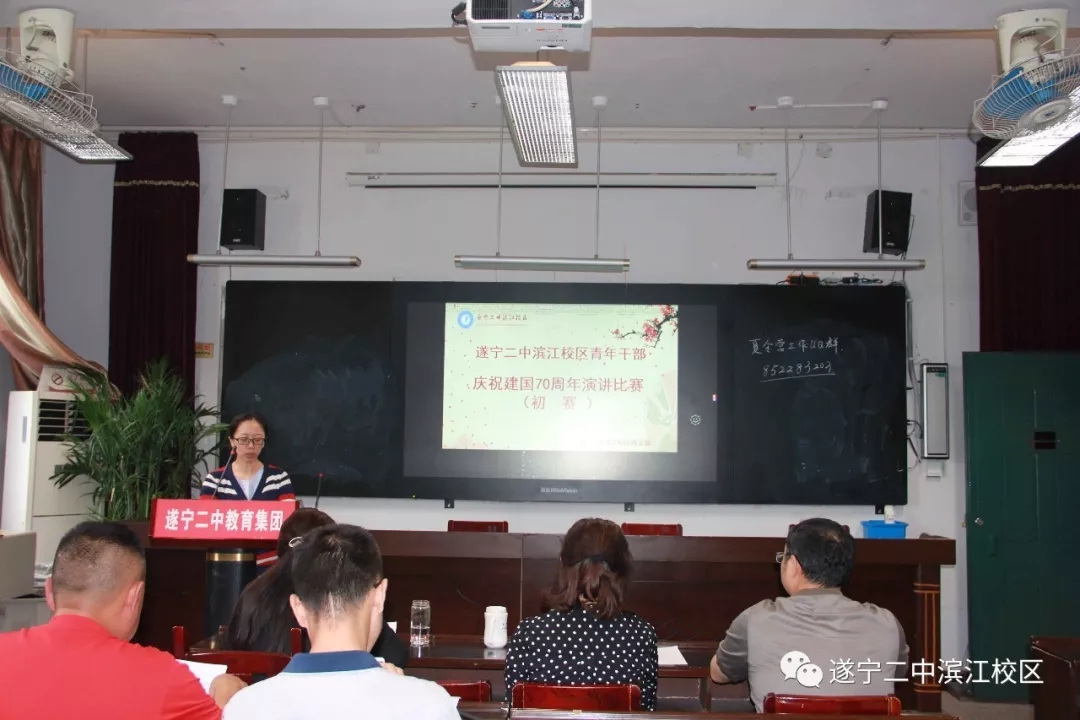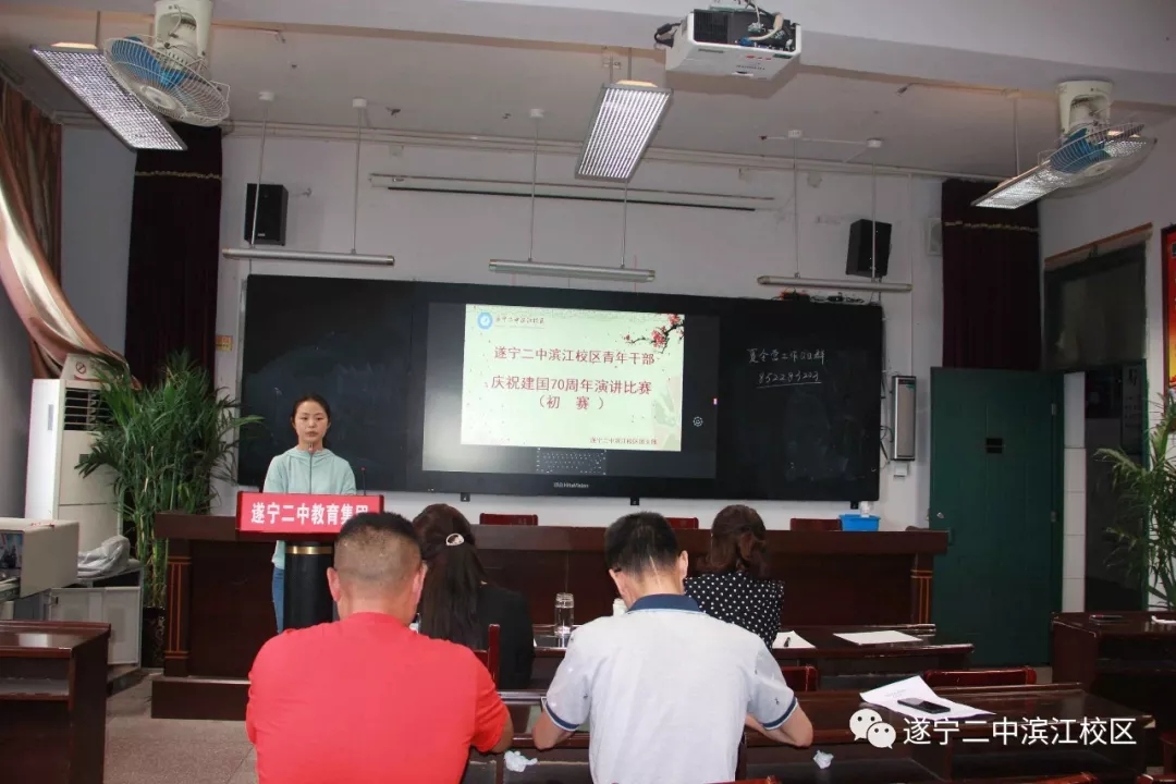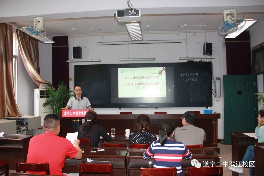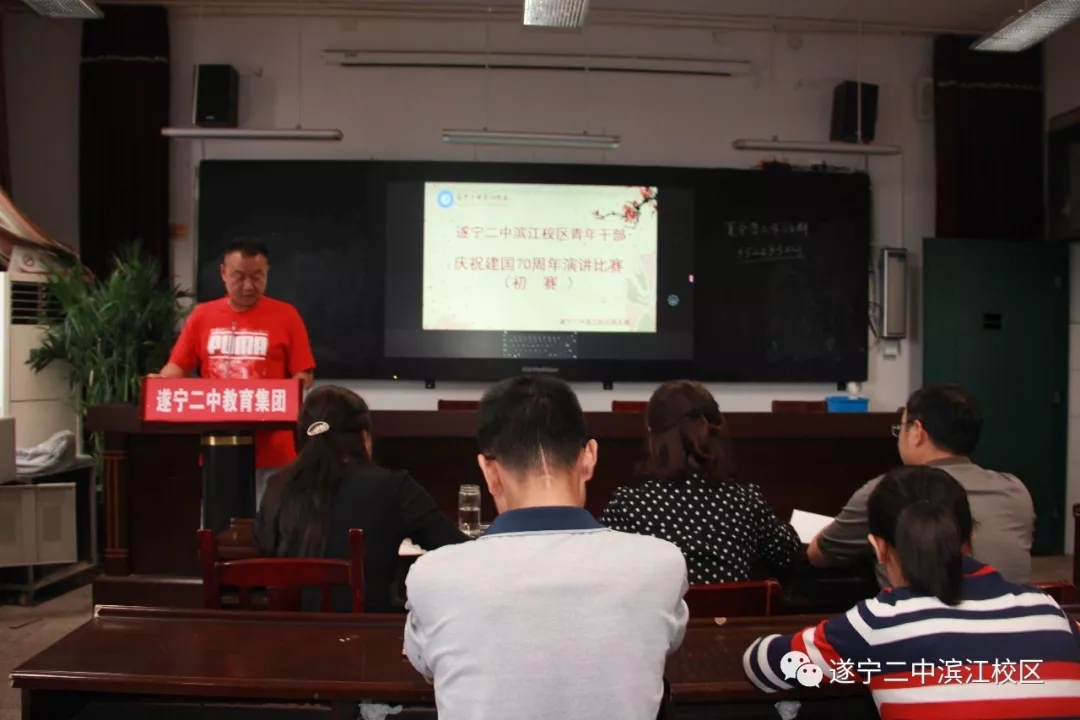 2019年6月18日上午,遂寧二中濱江校區(qū)在學(xué)校大會議室隆重舉行慶祝中華人民共和國成立70周年演講比賽。演講比賽以"歌頌黨的輝煌成就,抒發(fā)愛國理念,青春建功新時代"為主線,圍繞"壯麗七十年 青春永奮進(jìn)"主題,展示青年干部的愛國情懷和遠(yuǎn)大志向。參賽青年干部個個精神飽滿,躍躍欲試,渴望一展青春風(fēng)采。參賽選手按照抽簽順序一一登場。