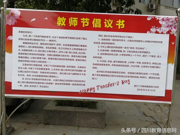 遂寧四中高度重視此次“為教師亮燈”活動,安排專人負(fù)責(zé),并結(jié)合此項活動作了充分的前期工作,利用周一升旗儀式和班團(tuán)活動,以“感恩老師”為教育主題,倡導(dǎo)全校學(xué)生以感恩的心、濃濃的情給尊敬的老師一個微笑、一句祝福;在校園里營造尊師重教的良好氛圍。