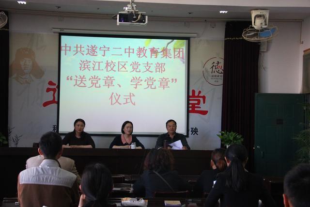 4月26日下午,遂寧二中濱江校區(qū)黨支部舉行了“送黨章、學(xué)黨章”活動啟動儀式。大會由學(xué)校黨支部委員、副校長肖待春同志主持。