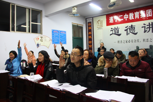 新年伊始,2018年1月4日下午中共遂寧二中教育集團(tuán)濱江校區(qū)支部第一黨小組和第二黨小組聯(lián)合開展了黨的十九大精神知識(shí)競賽,會(huì)議由學(xué)校黨辦主任孟軍同志主持。
