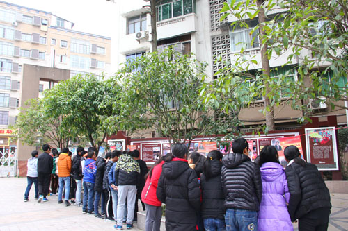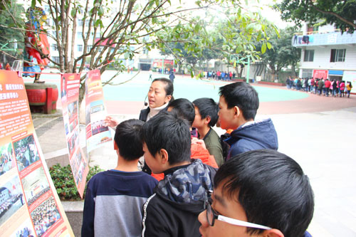 師生們在認真觀看宣傳圖片