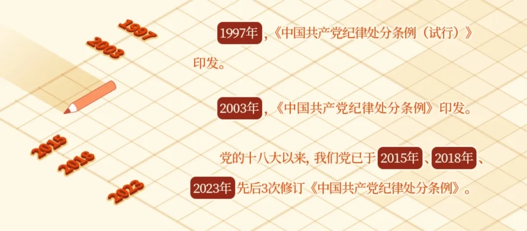 2023年12月,中共中央印發(fā)了修訂后的《中國共產(chǎn)黨紀(jì)律處分條例》,這是黨的十八大以來,我們黨第3次修訂《中國共產(chǎn)黨紀(jì)律處分條例》。下面,我們一起回顧《條例》如何與時俱進,不斷修訂完善。