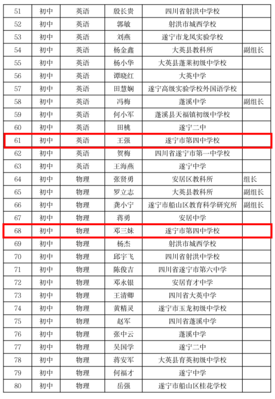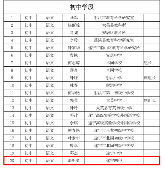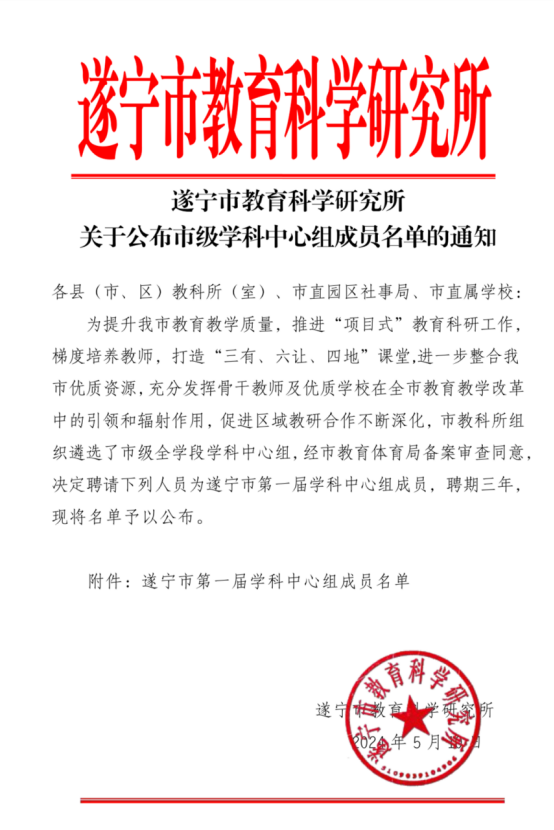 熱烈祝賀我校八名教師被遂寧市教育科學(xué)研究所聘請為遂寧市第一屆學(xué)科中心組成員