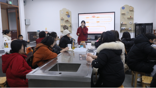 在面點(diǎn)坊,老師們、孩子們相互配合,自己制作、自己品嘗紅棗酥,了解中國(guó)非物質(zhì)文化遺產(chǎn)中面點(diǎn)制作技藝傳承與創(chuàng)新。