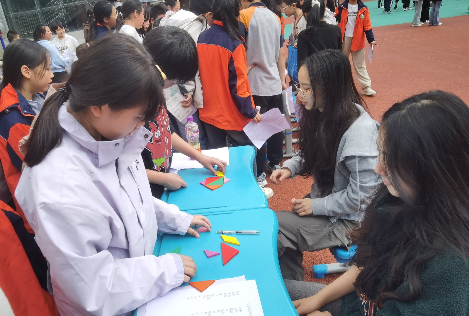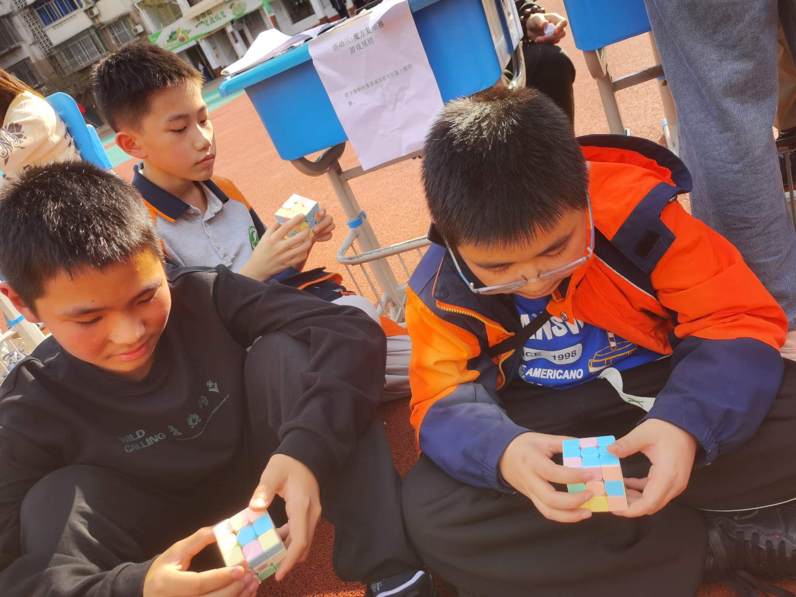 操場上,七巧板區(qū)域內,同學們巧拼圖案;撲克24點處,大家絞盡腦汁計算;魔方復原賽,手指靈動翻轉;數(shù)獨挑戰(zhàn),思維縝密推理;數(shù)字謎語區(qū),積極開動腦筋。活動中,同學們熱情高漲,在游戲中感受數(shù)學魅力,于挑戰(zhàn)里提升思維能力。他們手持通關文牒,憑借智慧與努力收獲印章。此次活動,不僅激發(fā)了孩子們對數(shù)學的熱愛,更為校園文化增添了一抹亮色。