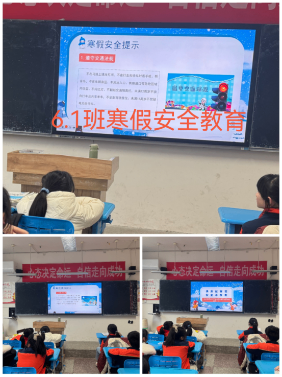 在主題班會(huì)課上,各班根據(jù)實(shí)際情況開(kāi)展了《快樂(lè)過(guò)寒假,安全不放假》寒假安全教育,從寒假時(shí)間安排、寒假活動(dòng)安排、寒假安全提示、放假返校提醒等方面對(duì)全體學(xué)生作提醒。旨在增強(qiáng)學(xué)生安全意識(shí),提升應(yīng)對(duì)各類安全問(wèn)題的能力。