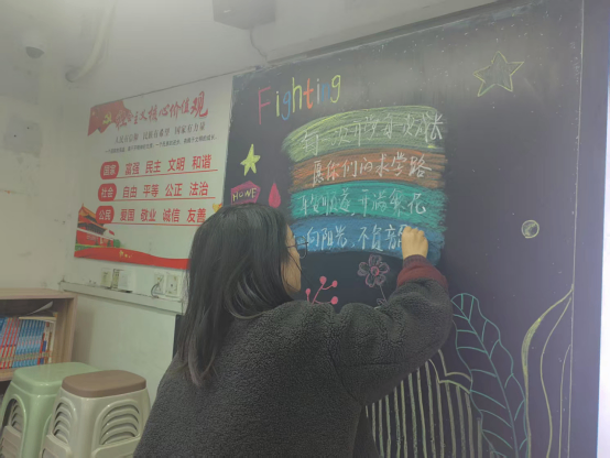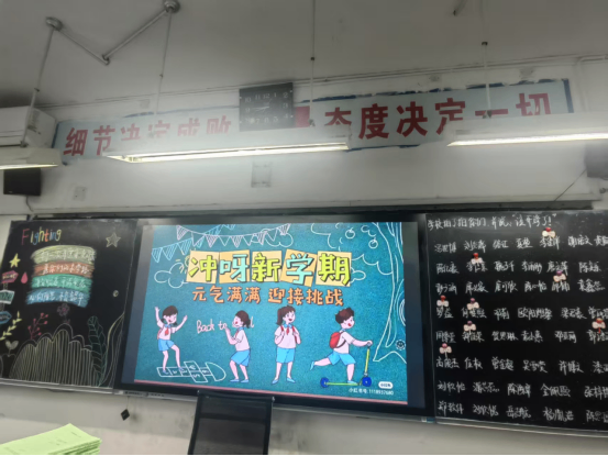 班主任精心布置教室,黑板上,歡迎詞溫暖如春。