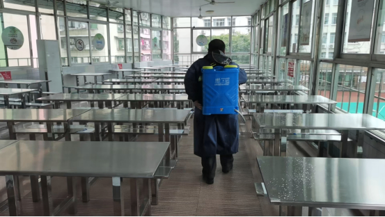 對(duì)食堂、宿舍、教學(xué)樓等區(qū)域全方位消殺。