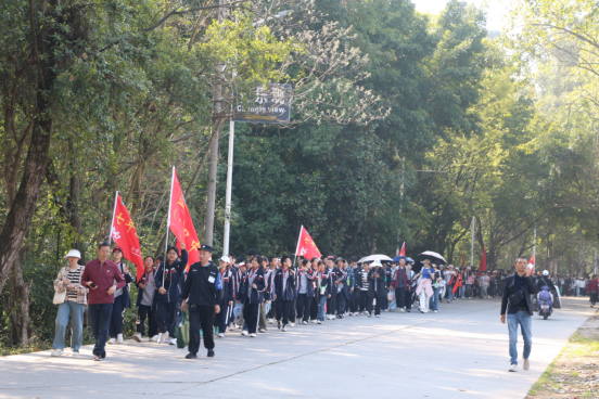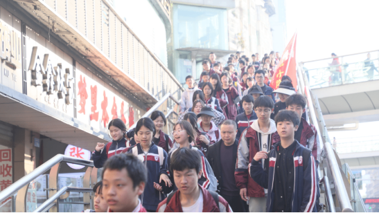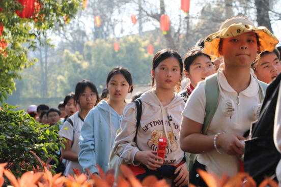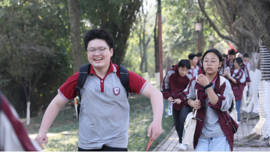初二學(xué)子則循著西山林蔭拾級(jí)而上,青石臺(tái)階見證著少年們相互扶持的身影——前行的身影在斑駁樹影中忽隱忽現(xiàn),恰似青春成長(zhǎng)的隱喻敘事。