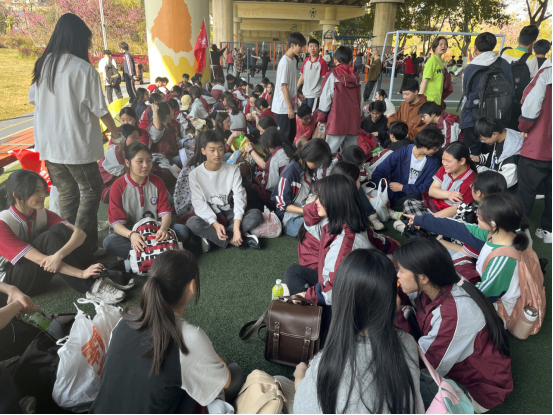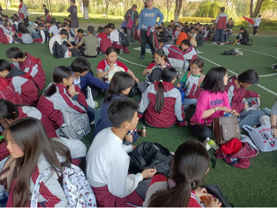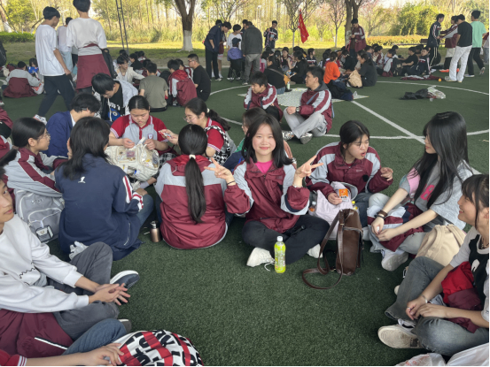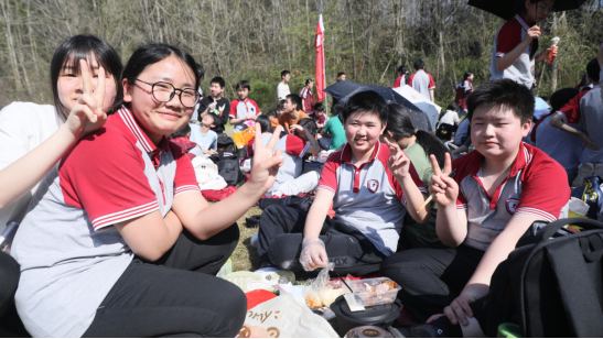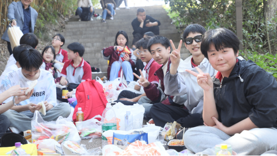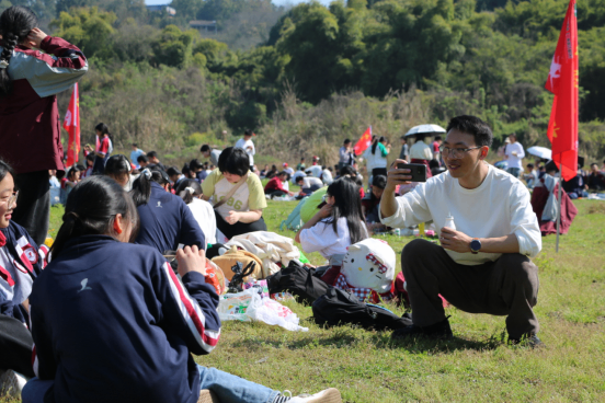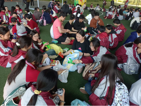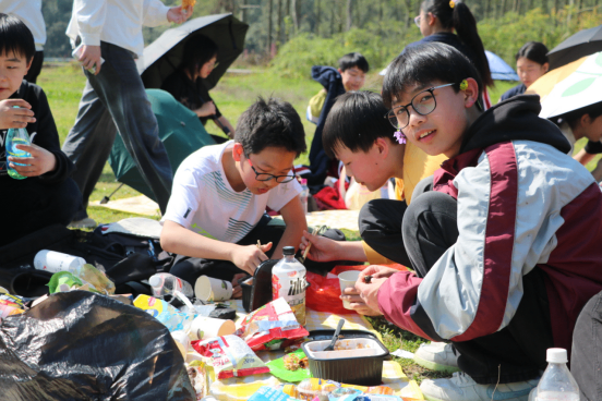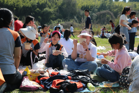 歷經(jīng)數(shù)小時(shí)跋涉,各路人馬終會(huì)師于山水之巔。勝利的歡騰在野餐布上綻放:或引吭高歌抒胸臆,或分享美食話成長(zhǎng)。歸途染就晚霞時(shí),雖有人挽起磨紅的腳踝,卻無人落下奮進(jìn)的節(jié)拍。這場(chǎng)用7公里寫就的成長(zhǎng)宣言,最終沉淀為四個(gè)年級(jí)共同的青春徽章。