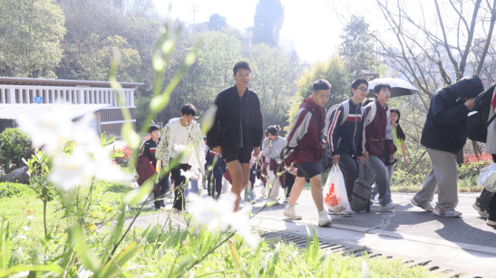 金波蕩漾的油菜花海與星羅棋布的野花織就天然畫廊,少年們浸潤(rùn)在草木清香中領(lǐng)悟"道由白云盡"的詩意。當(dāng)體力逐漸透支,相互傳遞的水壺盛滿同窗情誼;當(dāng)步履開始蹣跚,此起彼伏的加油聲織就青春交響曲。隨行教師化作移動(dòng)燈塔,時(shí)而用鏡頭定格感動(dòng)瞬間,時(shí)而以妙語化解疲憊心緒。