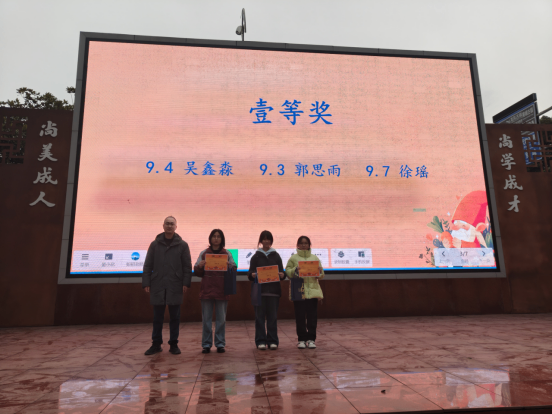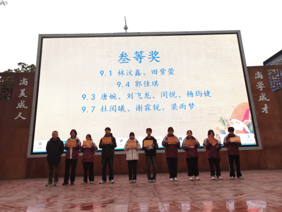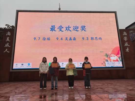 少年潛力無限,即使是零星的優(yōu)秀,也一定能拼湊出燦爛的星河。3月31日,初三語文組教師聯(lián)合學校美術組潘蓉老師,經(jīng)過細致斟酌,評選出一等獎三名,二等獎五名,三等獎十名;由全校師生投票選出“最受歡迎獎”三名,由校領導親自為學生頒發(fā)獎狀和獎品。