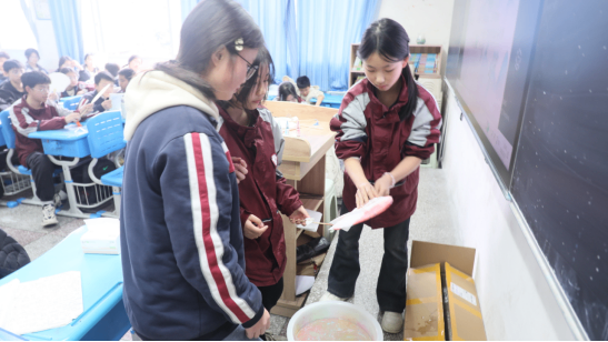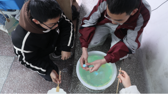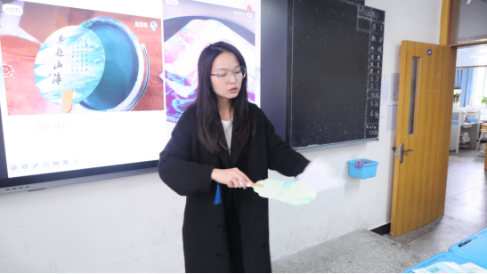 活動伊始,同學們在老師的指導下,以傳統(tǒng)漆藝技法為基底,用天然顏料為素白扇面染就繽紛底色。或青綠山水,或朱砂點絳,每一把漆扇都在浸染間流淌出獨特的東方韻味。有學生表示:“調(diào)色時水的流動讓扇面形成自然紋路,仿佛藏著千年前的詩詞故事?!??