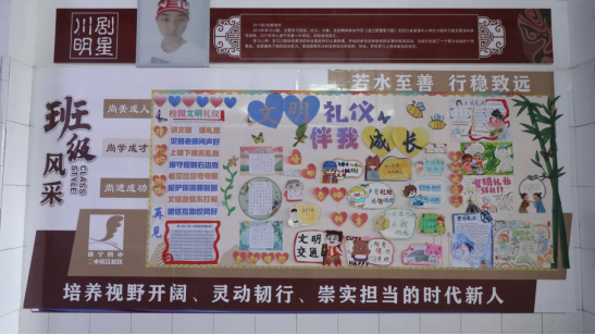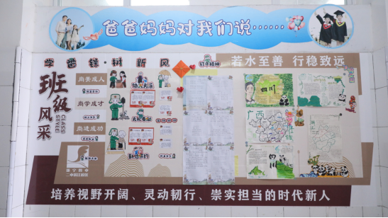 近日,遂寧四中(二中濱江校區(qū))成功舉辦了首屆班級文化墻布置展示活動,此次活動以“班級文化展風采 環(huán)境育人潤無聲”為主題,旨在營造積極向上、富有特色的班級文化氛圍,充分發(fā)揮環(huán)境育人的作用。