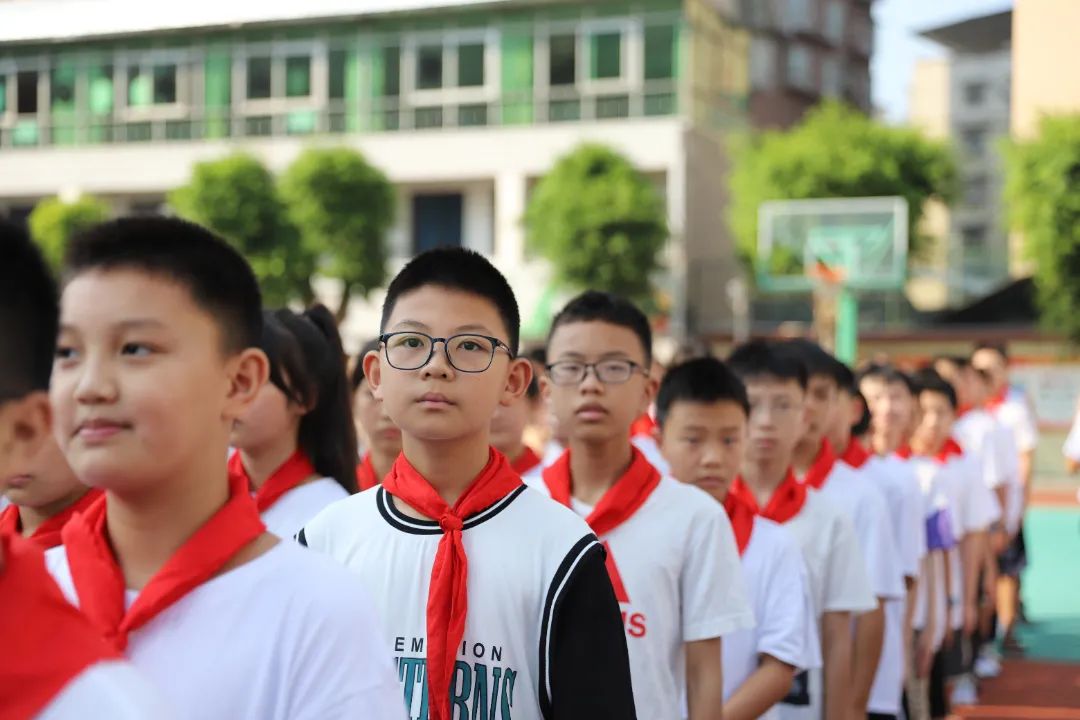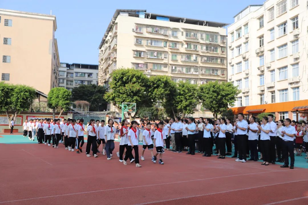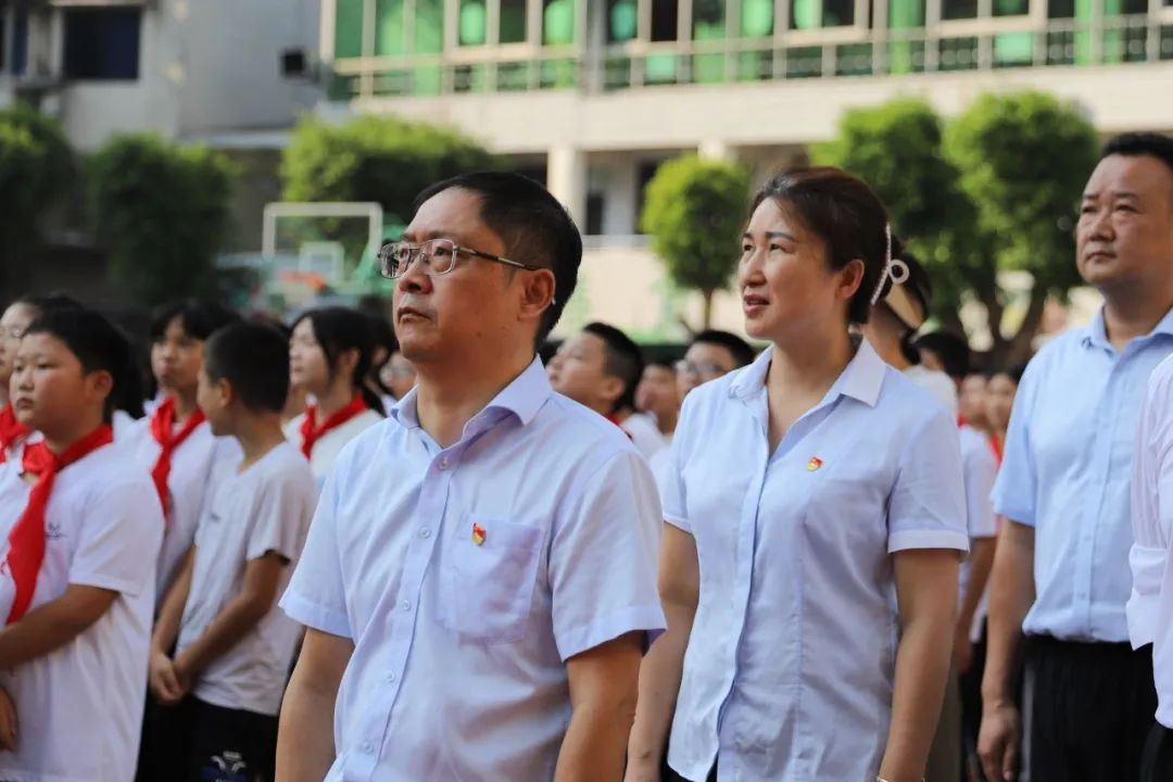 伴隨著雄壯的國歌聲,五星紅旗冉冉升起,高高飄揚在學校上空。