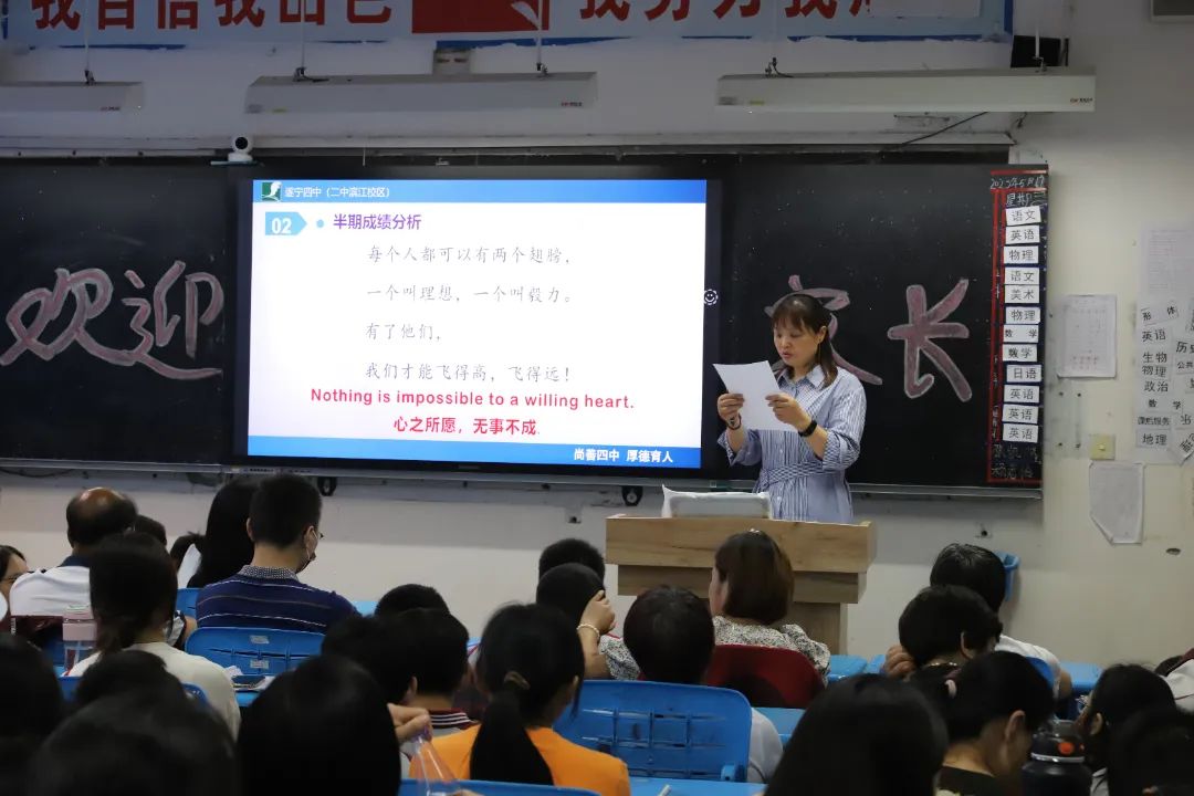 家校攜手同商育人大計(jì),師生齊心共譜杏壇華章。時(shí)節(jié)更迭,時(shí)光荏苒。本學(xué)期期中考試現(xiàn)已圓滿結(jié)束。為了獎(jiǎng)勵(lì)先進(jìn),鼓舞學(xué)生們的斗志,加強(qiáng)家校溝通協(xié)作,遂寧四中(二中濱江校區(qū))初二年級(jí)組于5月17日(本周三)開展了期中家長(zhǎng)會(huì)暨半期考試學(xué)生表彰大會(huì),大會(huì)由初二年級(jí)組長(zhǎng)吳玉碧主持,分管領(lǐng)導(dǎo)李攀華副校長(zhǎng)、年級(jí)主管王燕瓊主任、何念敏主任出席了此次大會(huì)。大會(huì)共分兩個(gè)環(huán)節(jié):學(xué)生半期表彰、班級(jí)座談會(huì)。